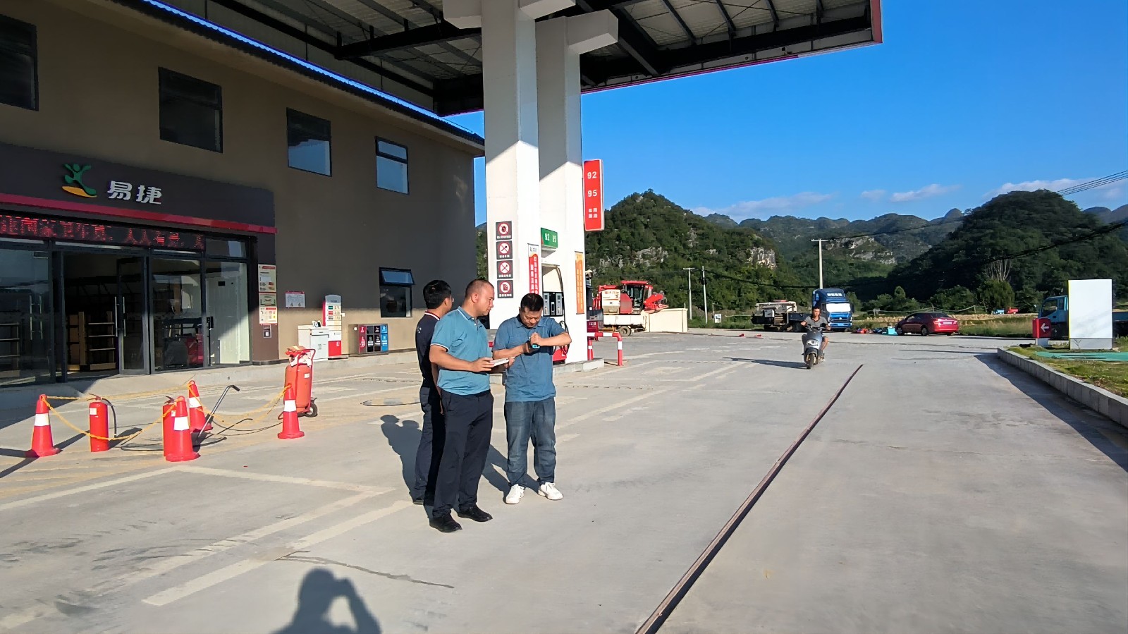 项目简介:该加油站位于平塘县者密镇四寨和平村X946县道旁,地理、交通位置十分优越,交通运输方便。 该加油站现有卧式油罐4个,其中柴油罐1个,油罐容积为30m³;92#汽油罐2个,单罐容积为30m³;95#汽油罐1个,油罐容积为30m³,油罐总容积为120m³,有效容积为105m³。按照加油站等级划分标准,该加油站属于二级加油站。 加油部分主要作业流程包括卸油工艺和加油工艺。经营过程中涉及的工艺设备有油罐车、卸油连接软管、输油管、埋地储油罐、加油机等,涉及的主要操作有卸油操作、加油操作、计量操作、清罐作业等工序。 | ||||||||||||