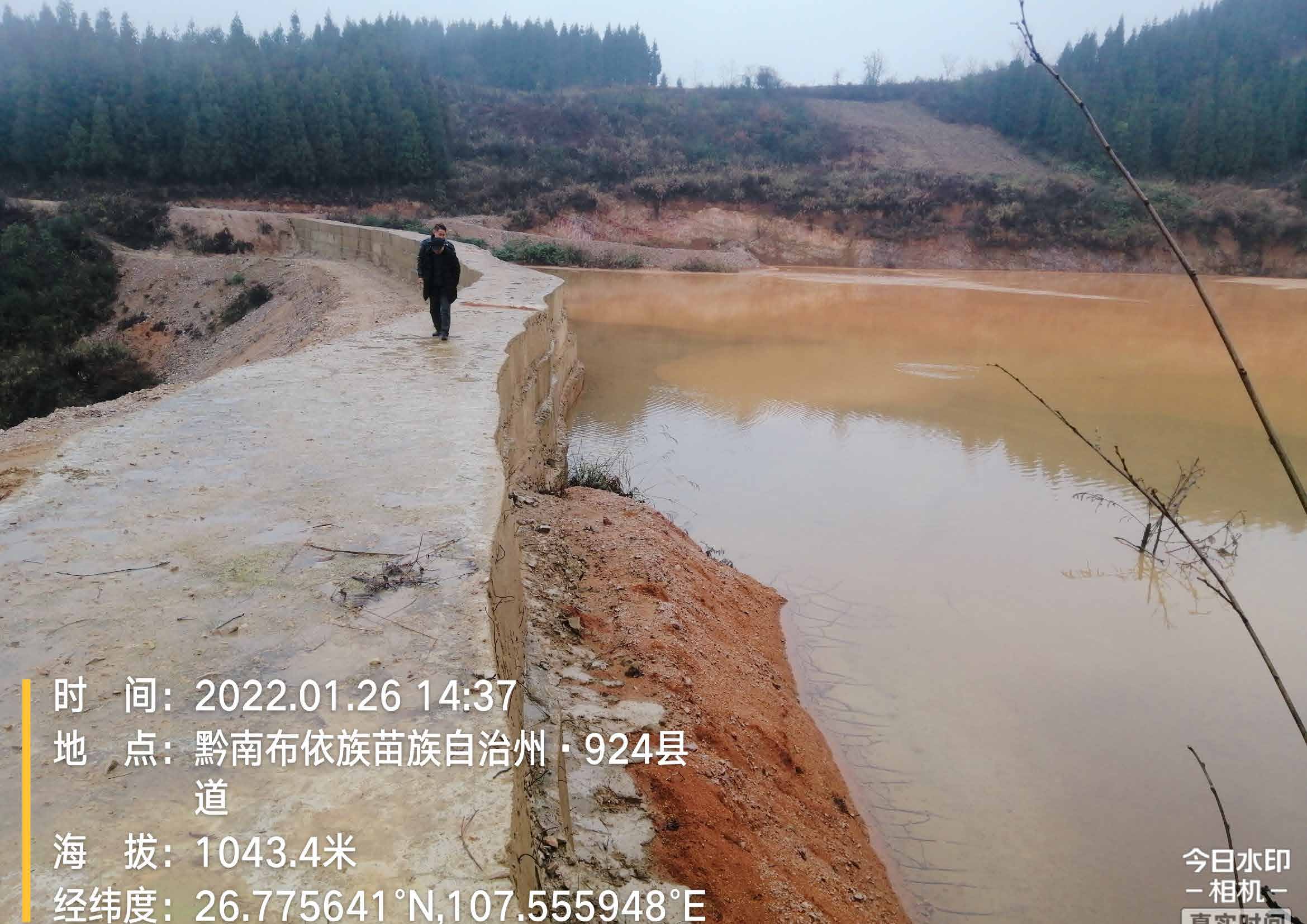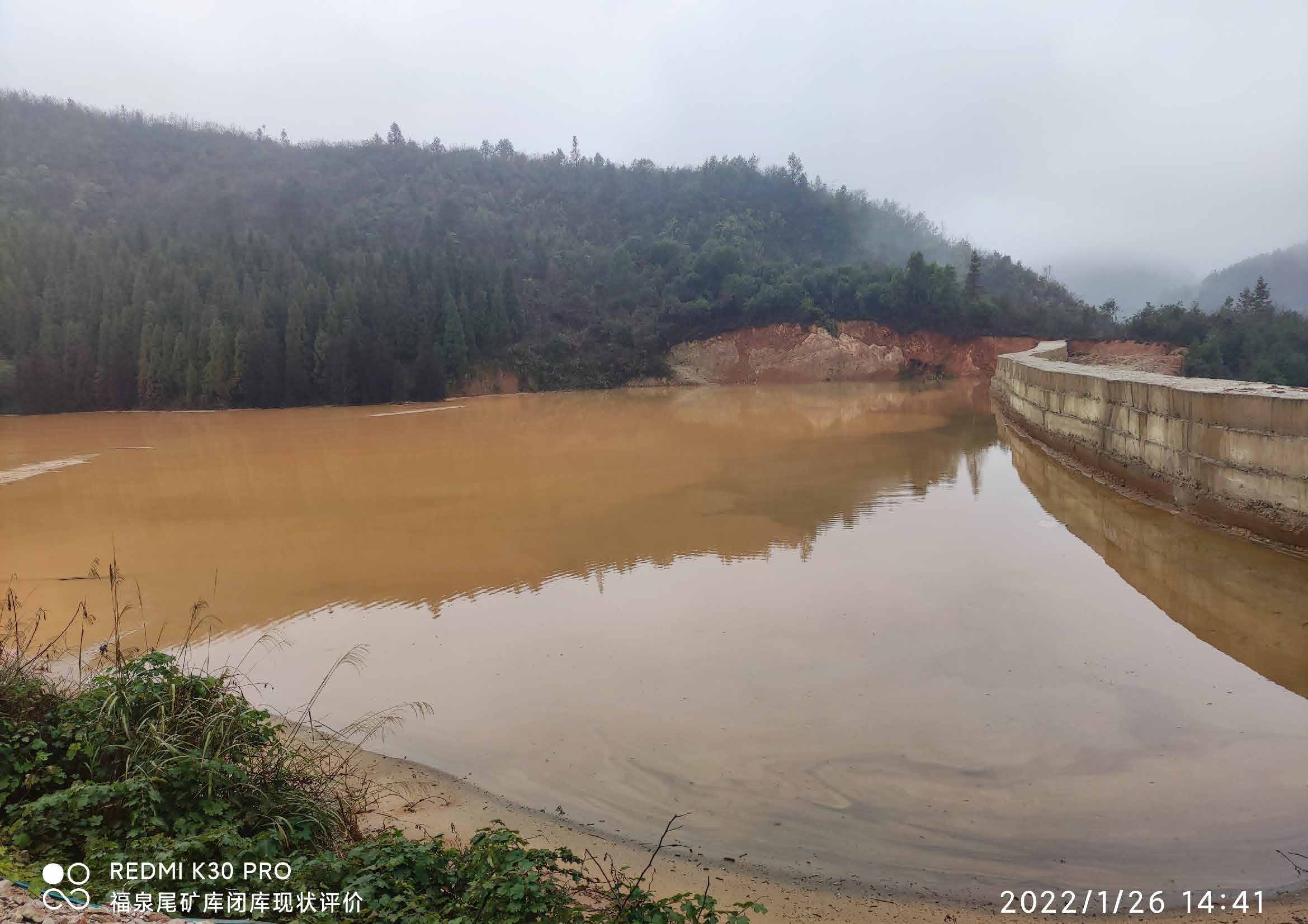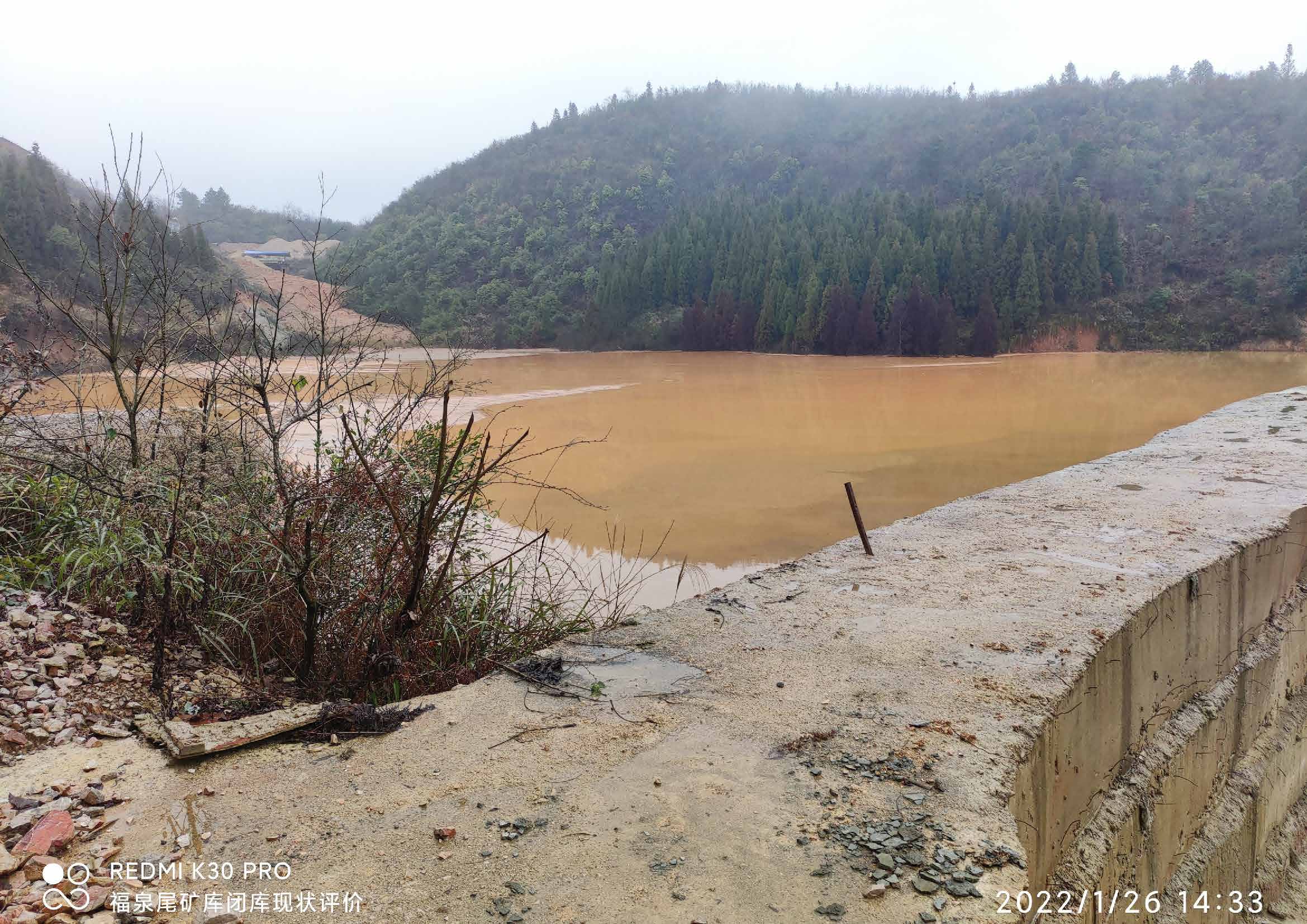 项目简介: 福泉市野猫硐重晶石尾矿库位于福泉市地松镇梨树坡,中心坐标为北纬 26°46'31.65",东经 107°33'23.51"。为重晶石尾矿渣尾矿库。 福泉市野猫硐重晶石矿尾矿为山谷型尾矿库,库容约10万立方,尾矿坝为一次性筑坝,经勘察钻孔实测坝高12.1m,坝体为毛石混凝土浇筑重力坝,坝顶宽度2.5m,坝长117m,面坡坡比1:0.2,背坡坡比1:0.2;尾矿渣堆积最大厚度约8m,尾矿库下游一公里无居民点,本库等级属五等库。 该尾矿库为无主库,无正规设计。 该尾矿库停止使用后,由于长期无人管理,原有的排洪能力功能已经丧失,原有的监控手段亦丧失殆尽,形成现有安全隐患。 | |||||||||||||||