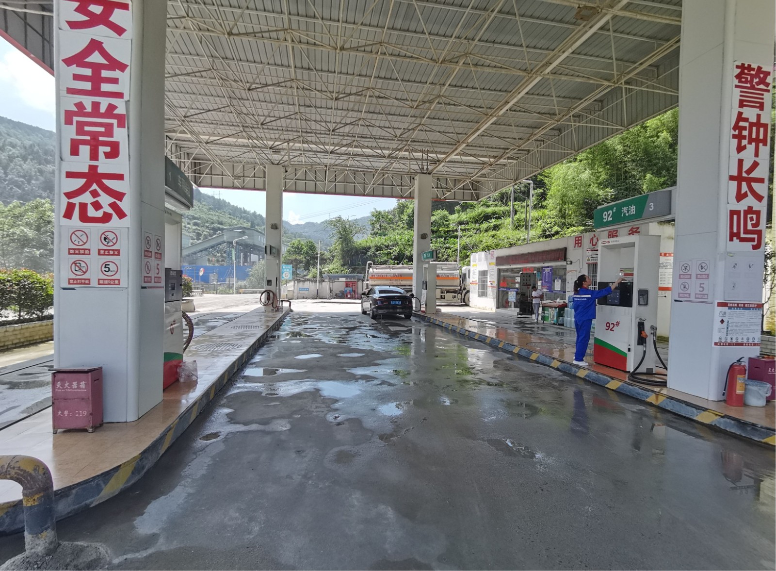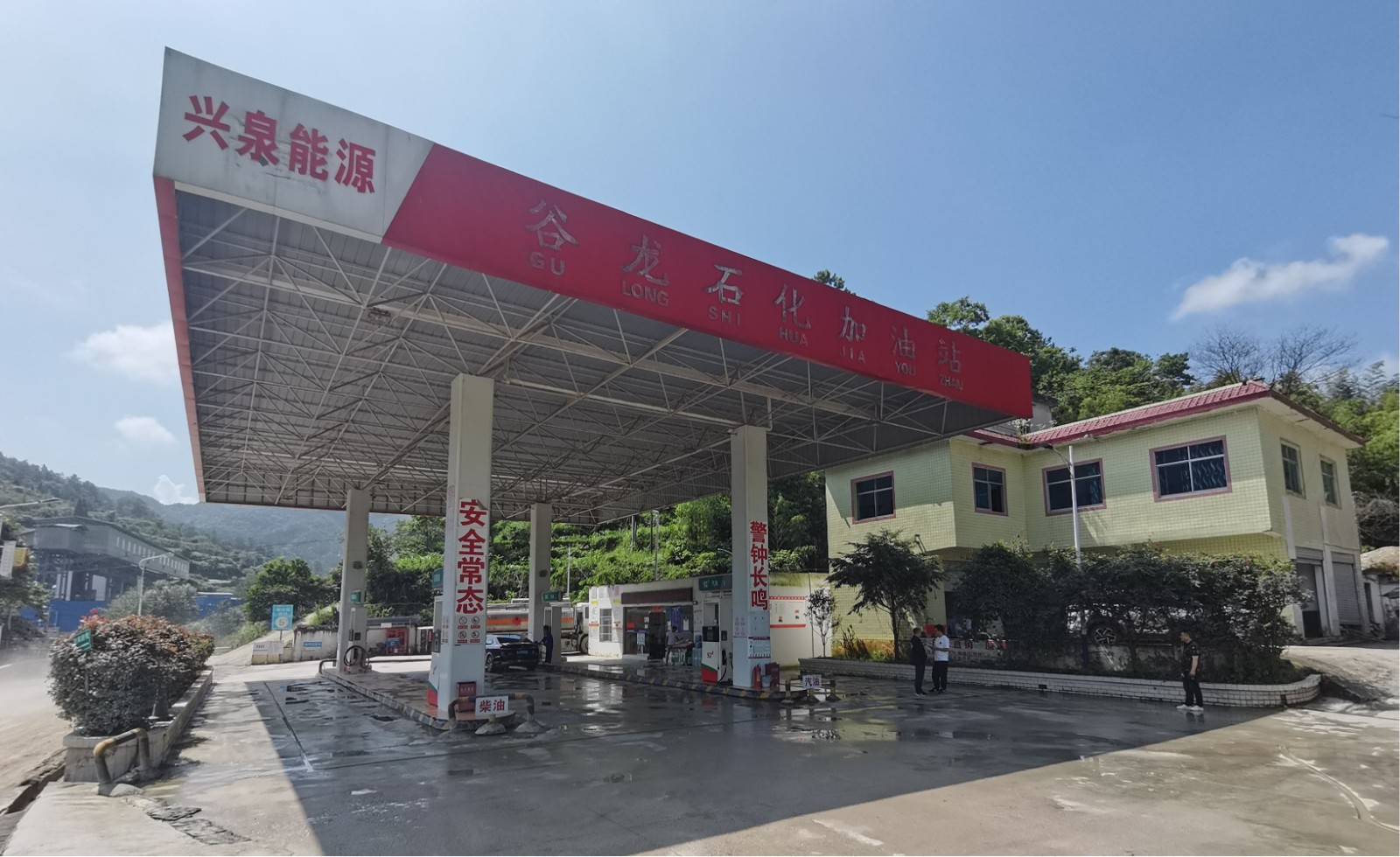 项目简介:福泉市谷龙石化加油站管理有限公司成立于2018年6月27日,该加油站原名称为福泉市道坪镇谷龙石化加油站,加油站名称于2023年10月25日变更为福泉市谷龙石化加油站管理有限公司,并于2023年11月3日获得福泉市市场监督管理局换发的新营业执照。加油站位于贵州省黔南布依族苗族自治州福泉市道坪镇谷龙村,主要经营汽油、柴油,经营方式为零售经营。 该加油站于2021年6月21日取得黔南布依族苗族自治州应急管理局换发的危险化学品经营许可证(证号:黔南WH经许证字[2021]197号),其有效期为2021年6月22日~2024年6月21日;因2023年10月25日加油站名称变更,于2023年11月2日取得黔南布依族苗族自治州应急管理局换发的危险化学品经营许可证(证号:黔南WH经许证字[2023]205号),其有效期为2023年11月2日~2024年6月21日。 加油站现有卧式储罐3个,其中0#柴油罐1个,油罐容积为30m³;92#汽油罐1个,油罐容积为30m³;95#汽油罐1个,油罐容积为30m³;油罐总容积为90m³,有效容积为75m³(柴油罐容积折半计算),加油站油罐均为室外埋地油罐。按照加油站等级划分标准,该加油站属于三级加油站。 | ||||||||||||||||||