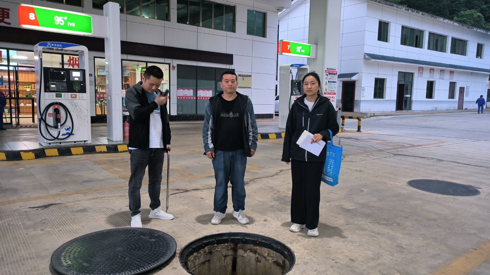 项目简介:该加油站成立于2017年11月22日,位于贵州省黔南州平塘县克度镇,进出口与S315省道相接。地理、交通位置十分优越,交通运输方便。 该加油站现有卧式储罐5个,其中柴油罐2个,油罐容积均为40m³;92#汽油罐2个,油罐容积分别为30m³、40m³;95#汽油罐1个,油罐容积为40m³;油罐总容积为190m³,有效容积为150m³(柴油罐容积折半计算),加油站油罐均为室外埋地油罐。按照加油站等级划分标准,该加油站属于二级加油站。 该加油站主要功能是为过往车辆加油,其主要作业流程包括卸油工艺和加油工艺。经营过程中涉及的工艺设备有油罐车、卸油连接软管、输油管、埋地储油罐、加油机等,涉及的主要操作有卸油操作、加油操作、计量操作、清罐作业等工序。 | ||||||